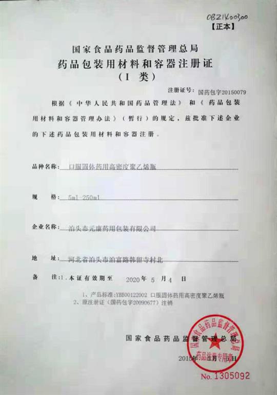 【口服固體藥用密度聚乙烯瓶生產(chǎn)資質(zhì)】