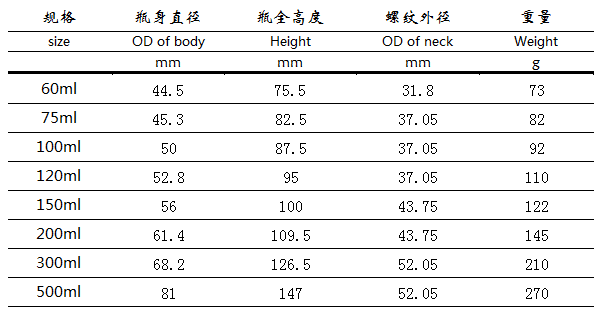 ,主要規(guī)格: 60ml、75ml、100ml、200ml、300ml、400ml、500ml。